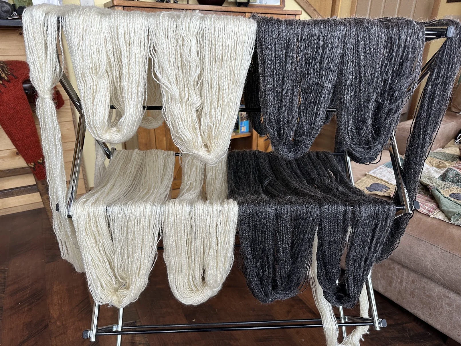 Natural Grey: 70 % black Shetland Sheep 30 % white Angora Goat (mohair)